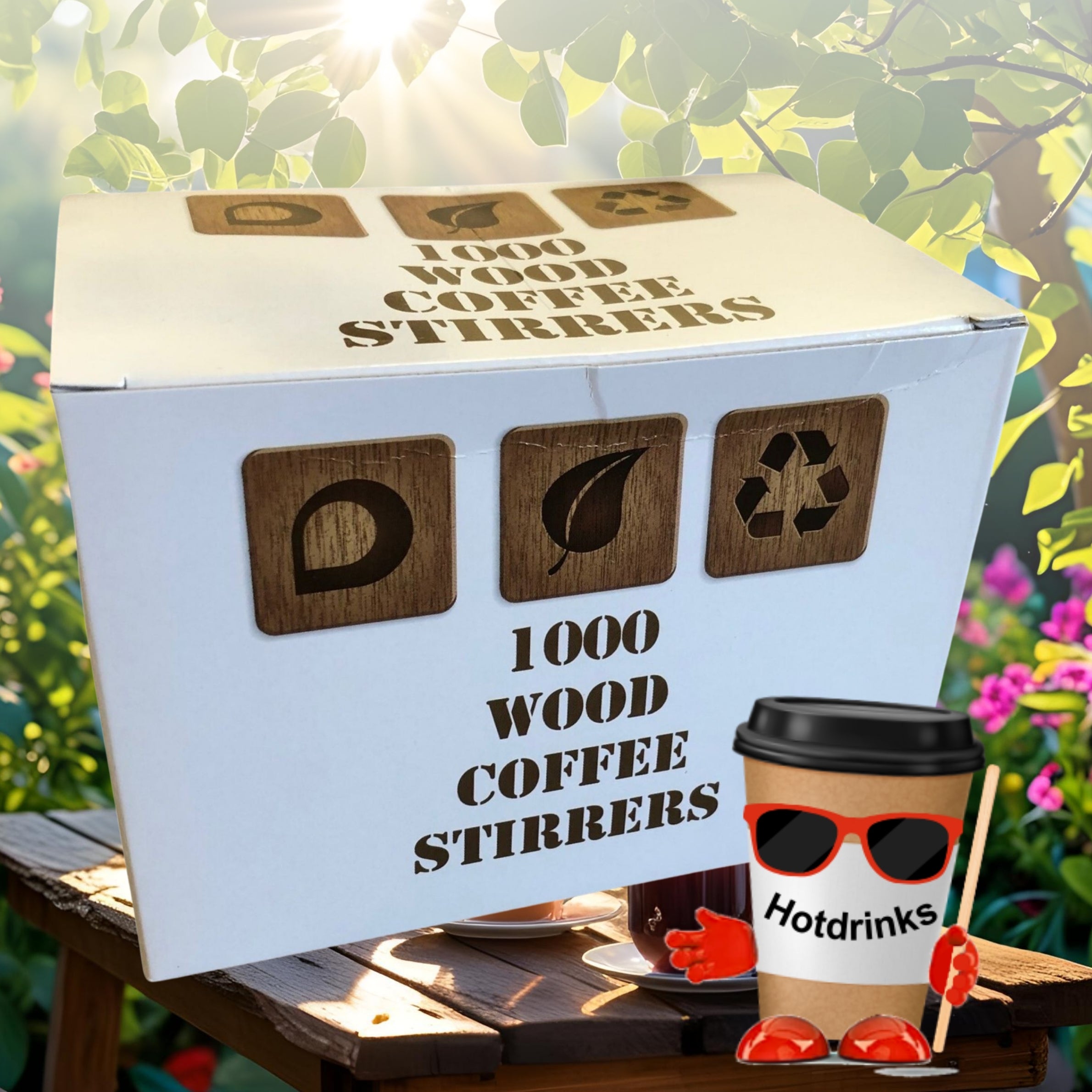 • 1000 x Wooden Stirrers perfect for mixing your hot drink.